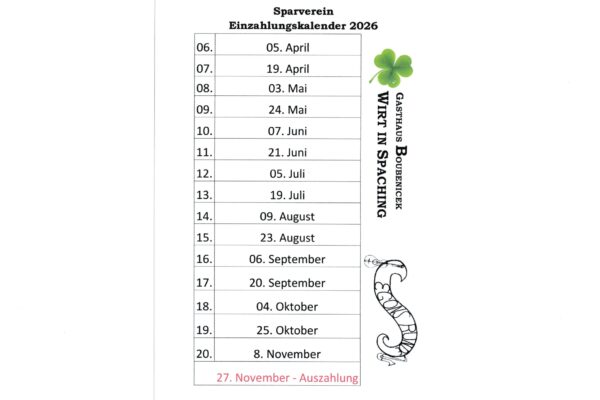 Sparvereininformation: Einzahlungskalender 2026