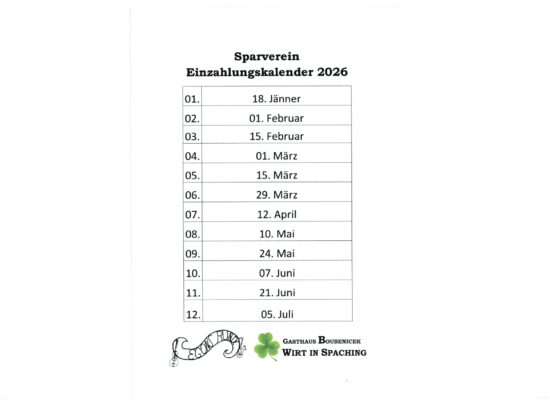 Wirt in Spaching – Gasthaus Boubenicek in Waizenkirchen  »  Aktuelles  »  Sparvereininformation: Erste Einzahlung war am 18. Jänner – in weiterer Folge laut Terminplan!